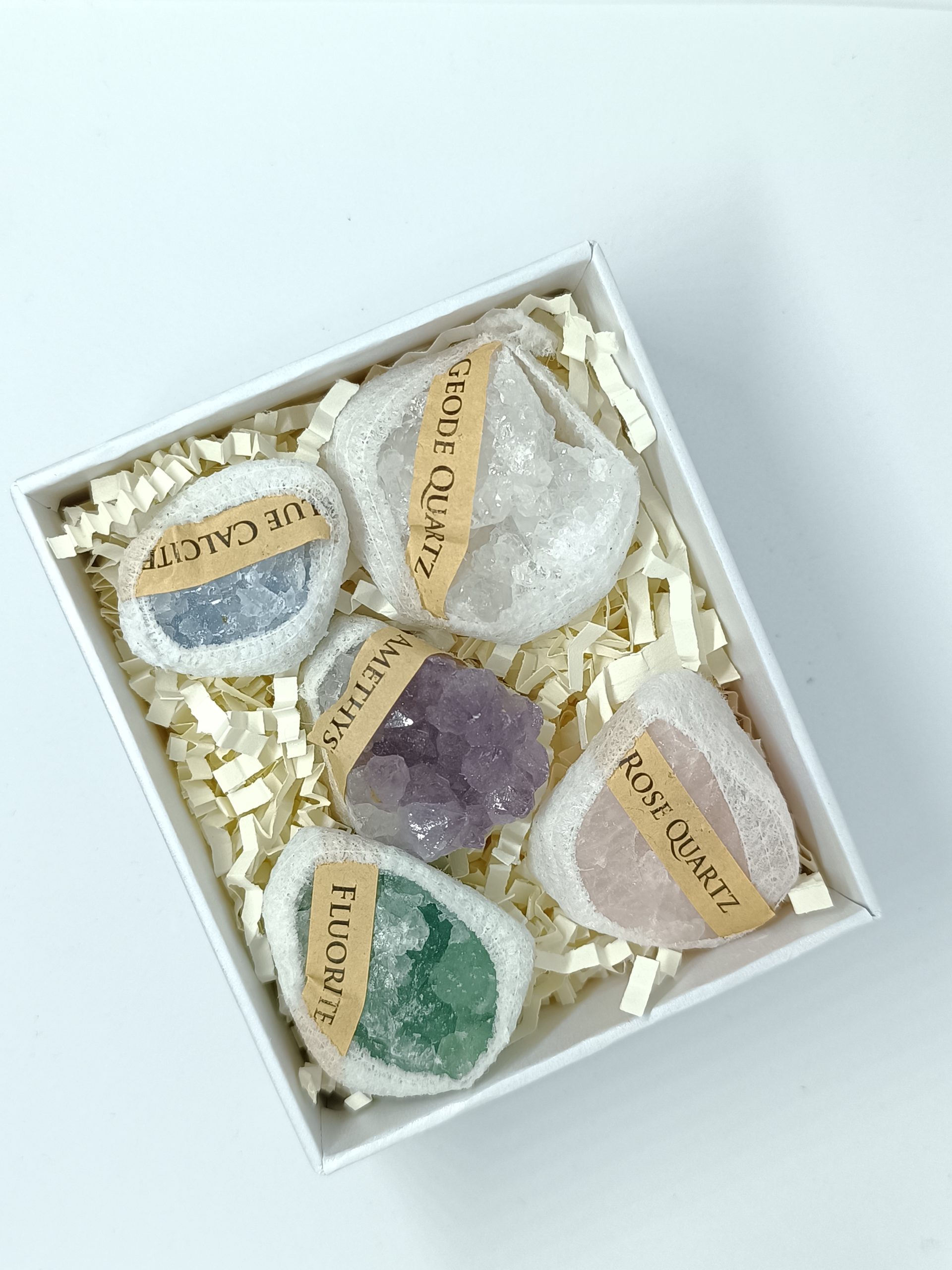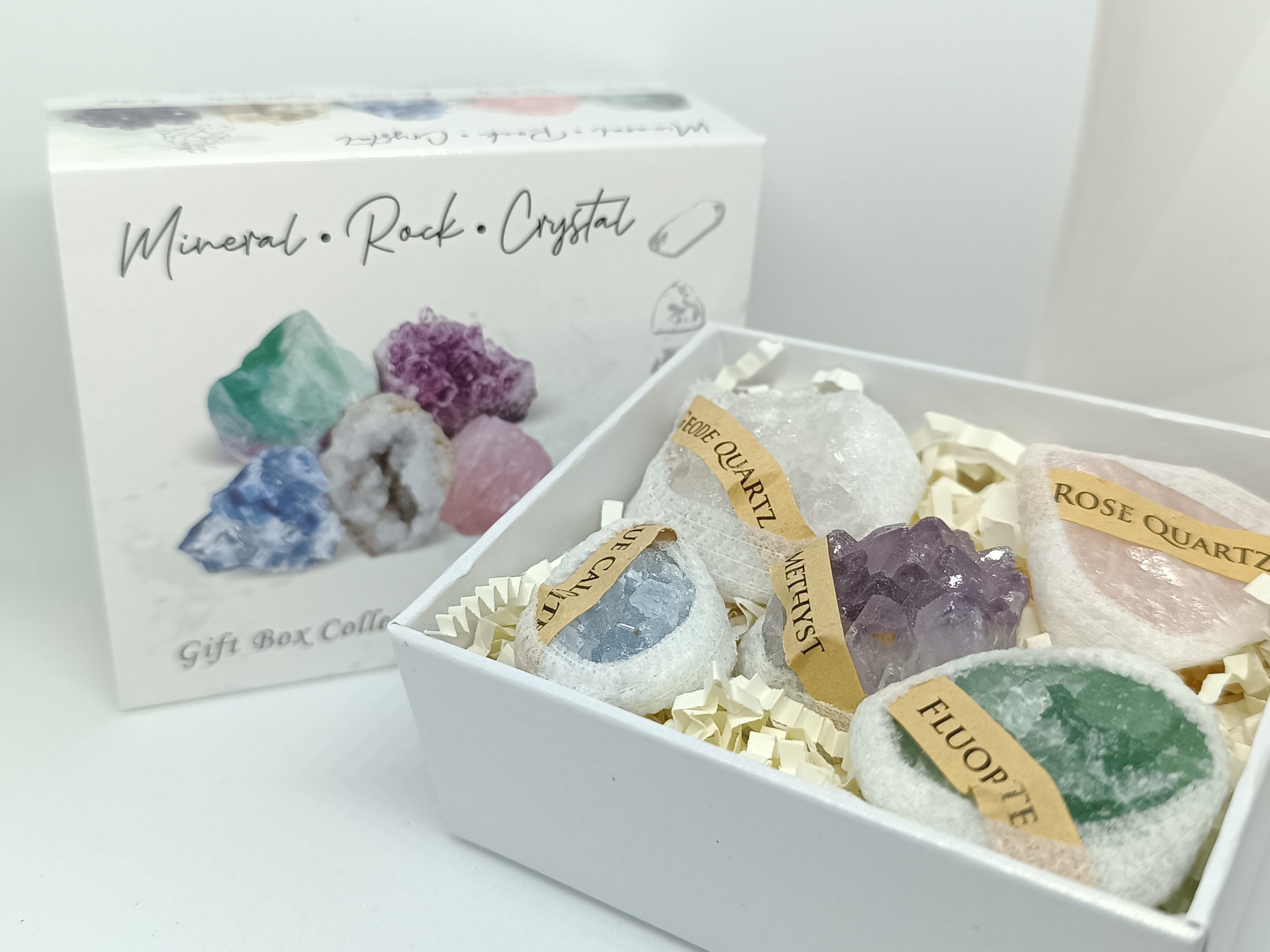 Ontdek dan dit leuk geschenksetje met 5 edelstenen en mineralen.